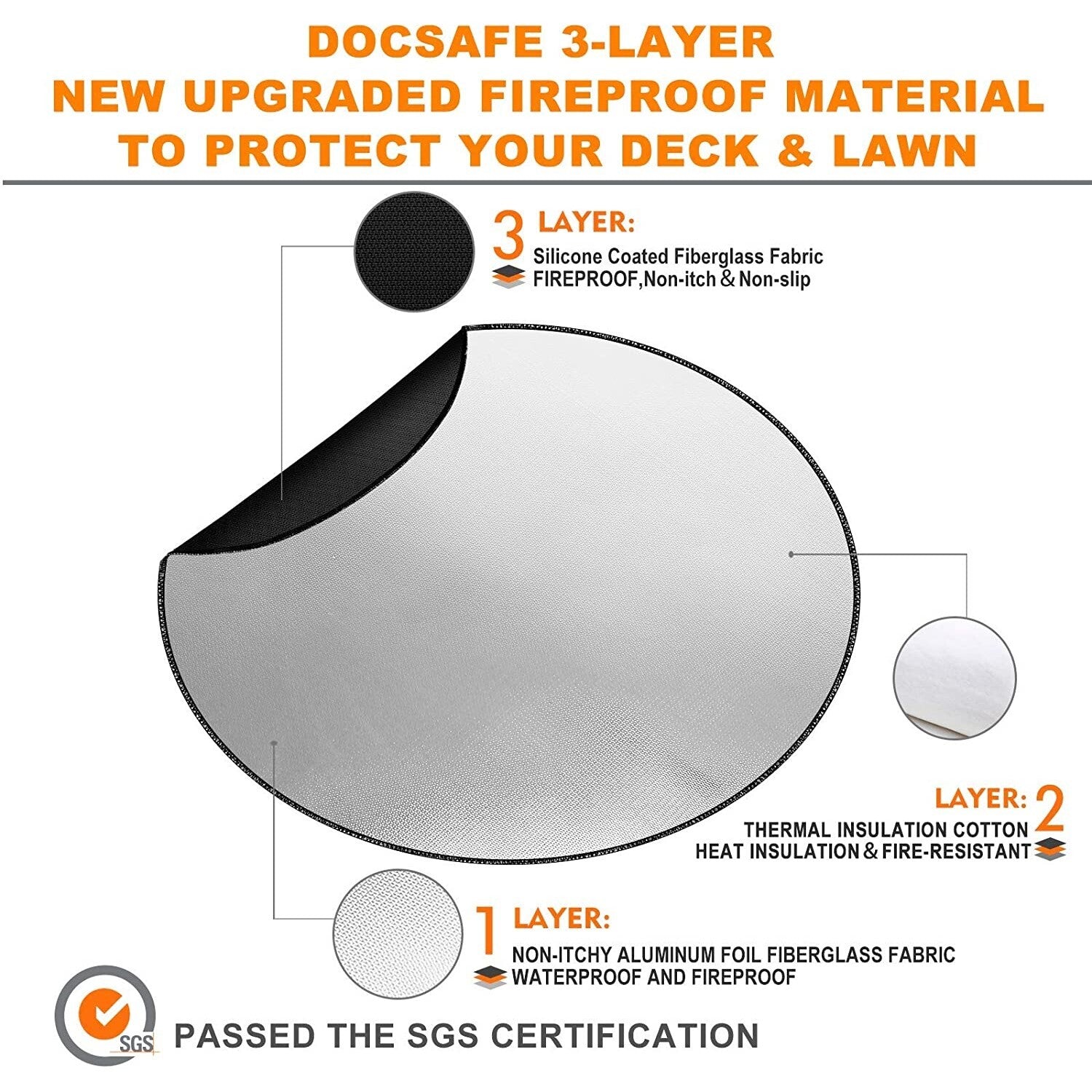 - Trusted after sales service:How do we protect lawns and deck from damage when we use the fire pit? DocSafe keep researching and developing on fireproof materials,safety technology.We only wish to present the best to customers,to protect your deck.If there any quality problem, please feel free to let us know.We promise to arrange a replacement or 100% refund immediately. Ready to respond within a 24 hour time,your suggestion has a great impact on the upgrade of our products.