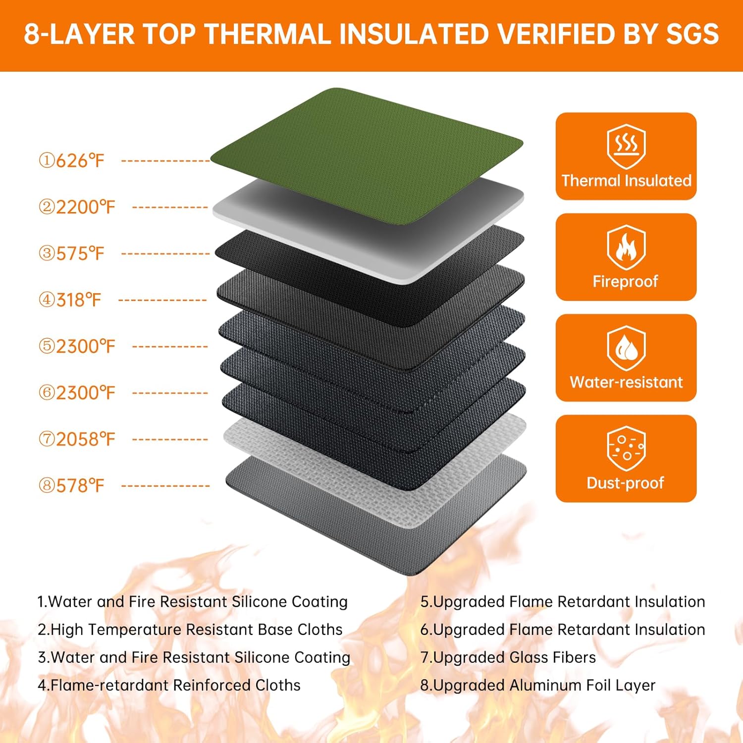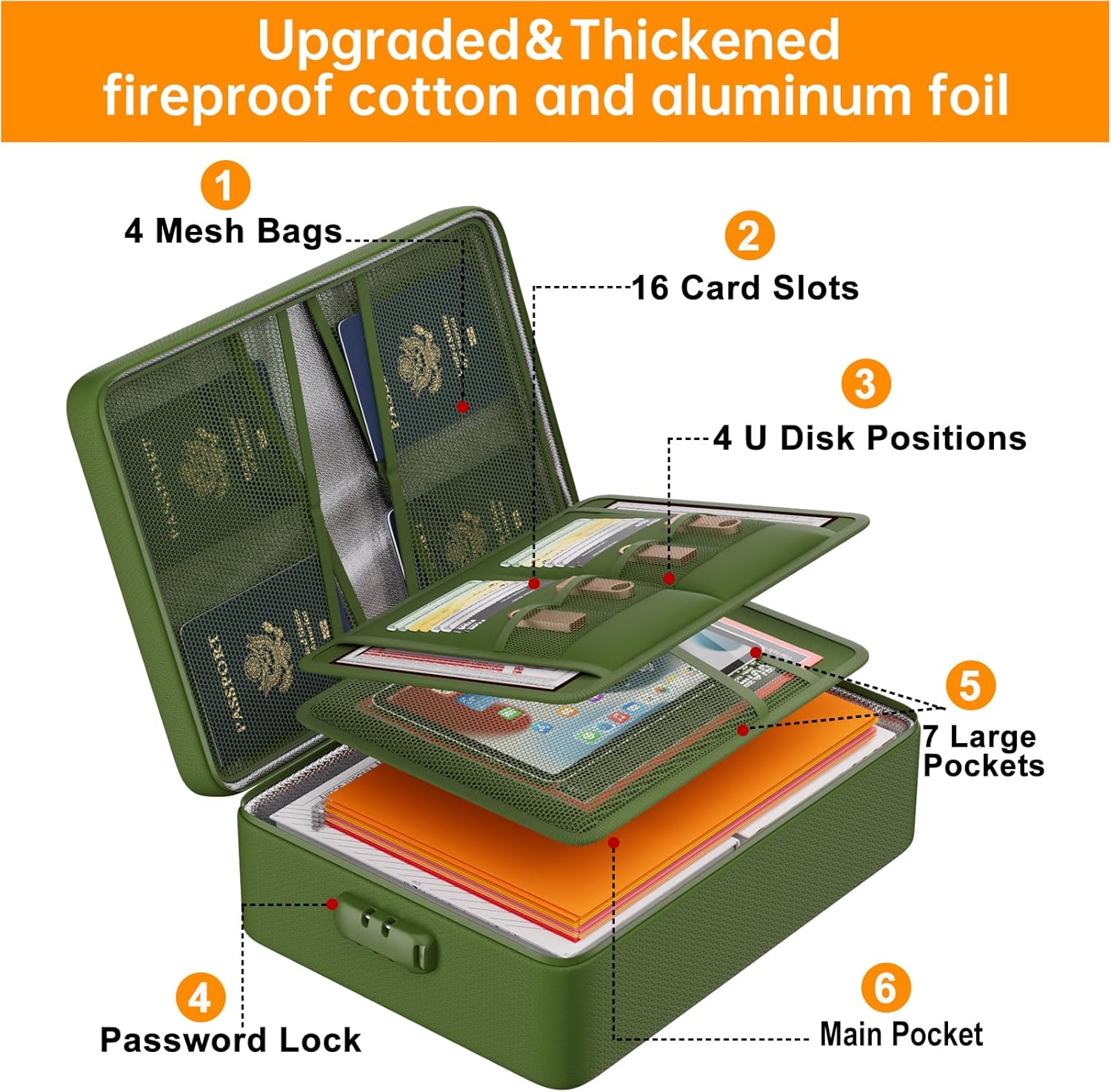 DocSafe 5200°F Document Organizer with Lock,Upgraded Heat Insulated Fireproof&Waterproof Box 8 Layers File Organizer,Portable Home Travel Safe Storage for Important Documents, Files,Green (Soft)